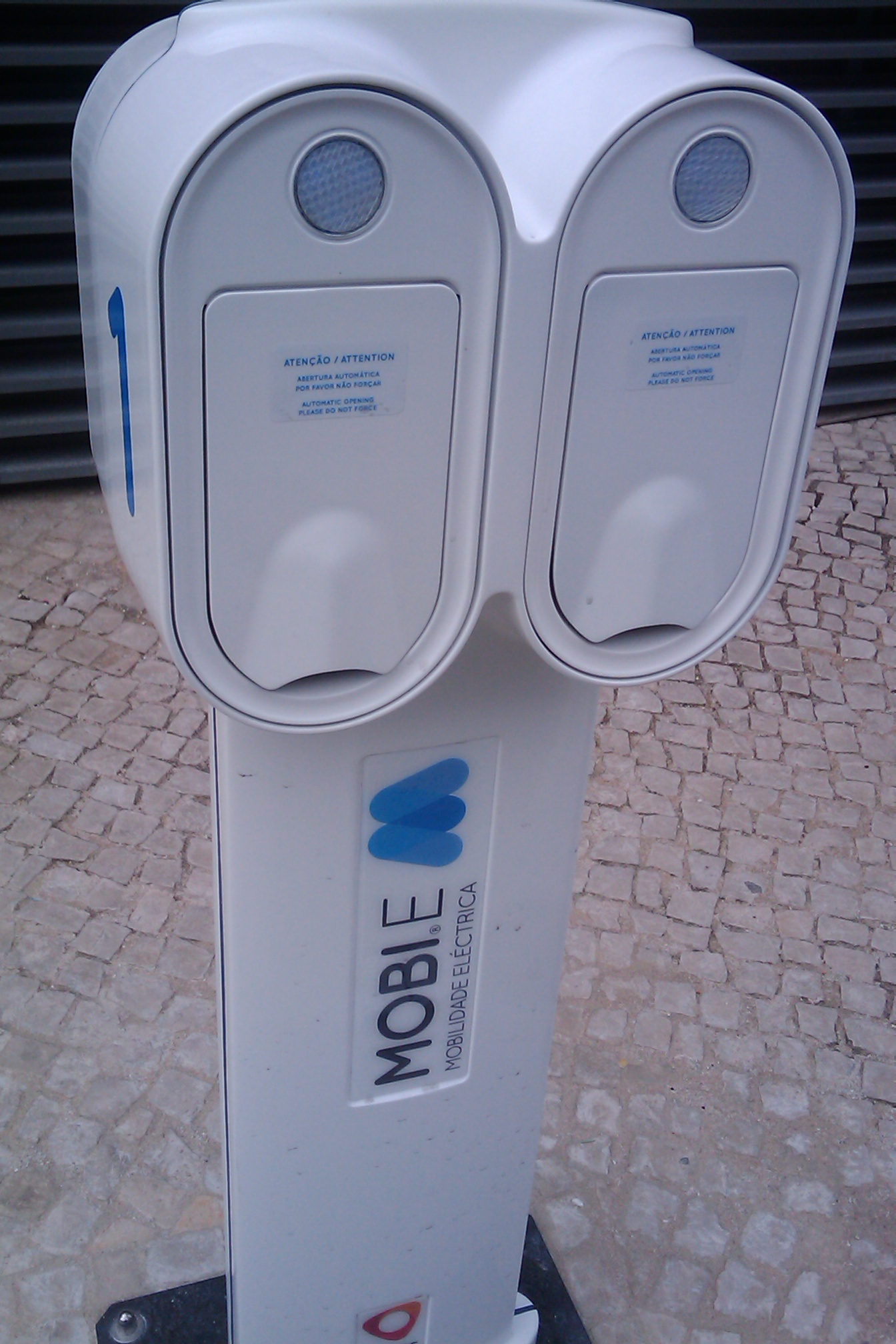 Um dos primeiros pontos de abastecimento da rede MOBI.E, no Parque das Nações, Lisboa, para carros eléctricos.